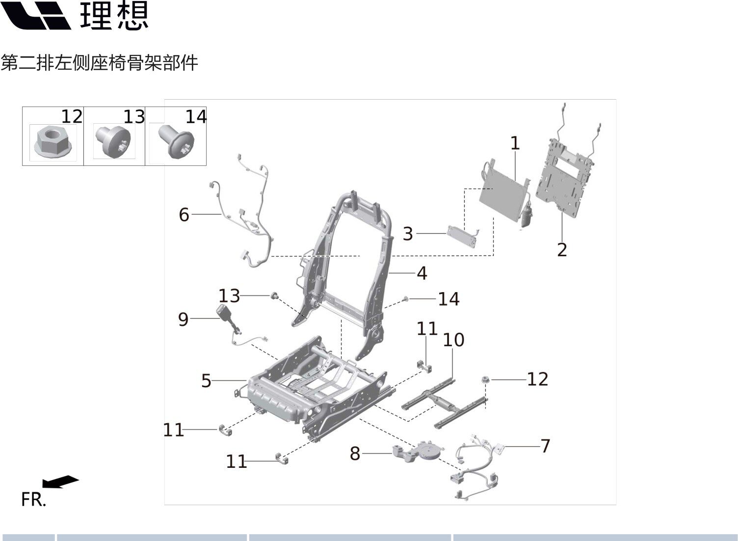 Каркас подушки второго ряда слева в сборе X01-71000038 для Lixiang L9 2022-2023