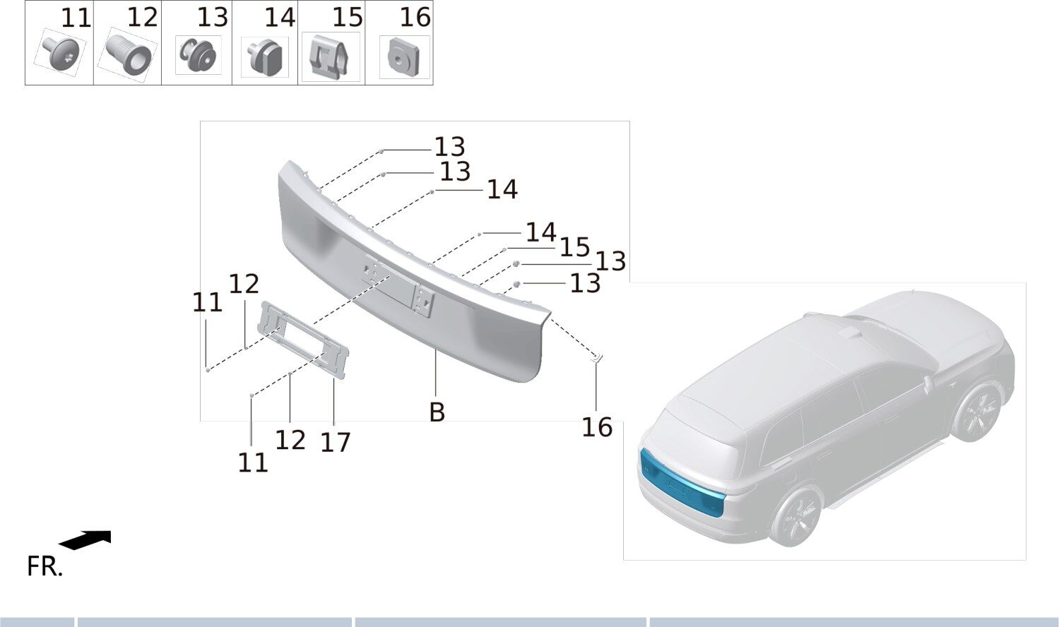 | 8 | 17 | X01-63040031 | кронштейн заднего номерного знака в сборе |