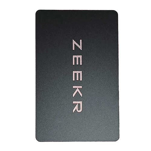 Автовизитка, авто табличка Zeekr, из синий алькантары с белой полоской