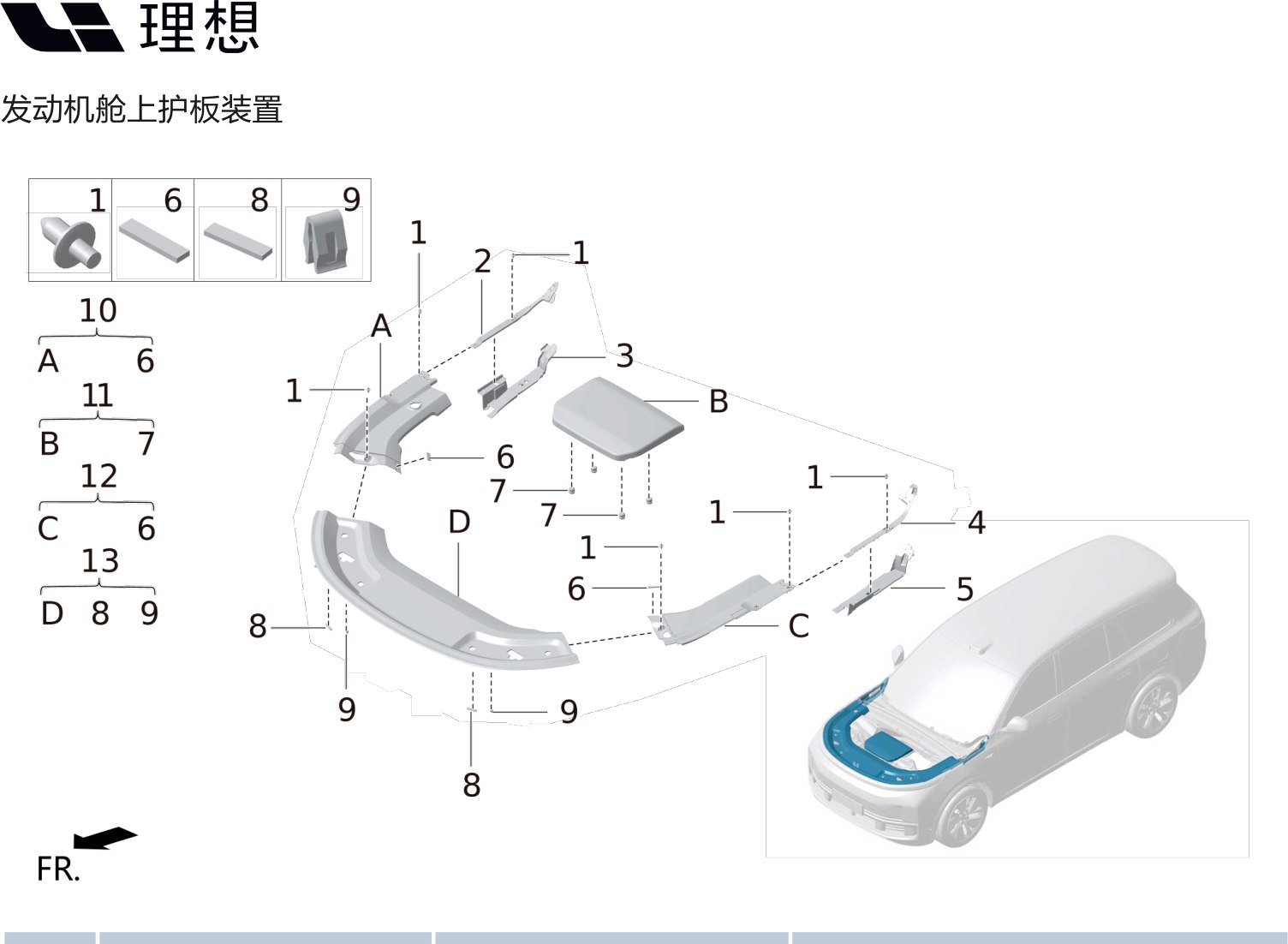| 8 | 13 | X01-55320011 | передняя защита двигателя |