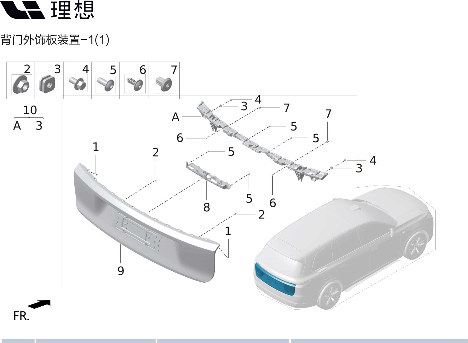 | 9 | 8 | X01-63040019 | кронштейн электрики внешней отделки задней двери |