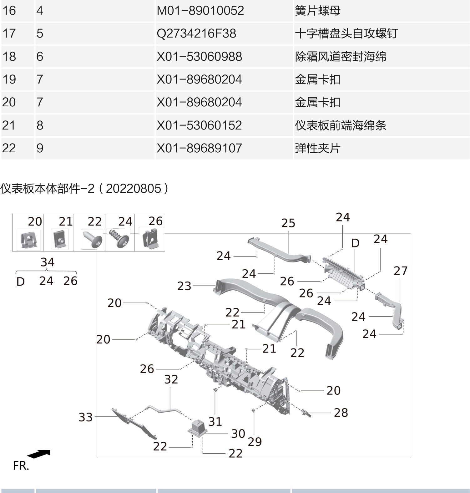 | 7 | 25 | X01-53060170 | левая направляющая дефростера в сборе |