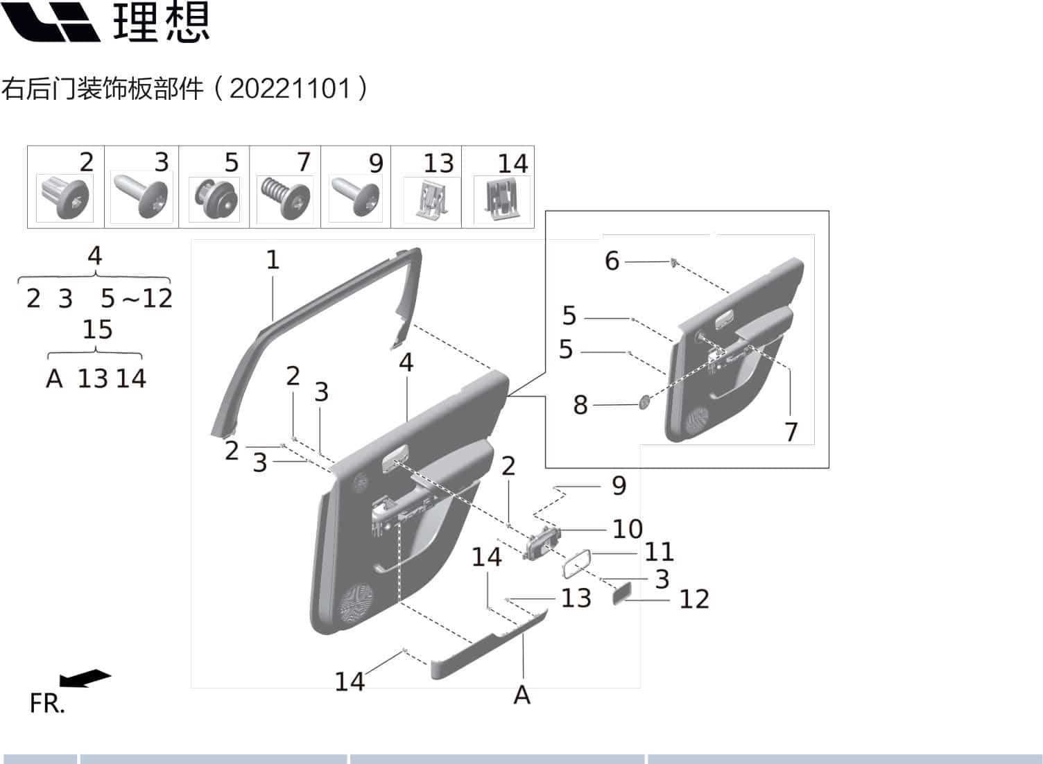 | 9 | 15 | X01-62025700 | правый задний подлокотник декоративная панель в сборе |